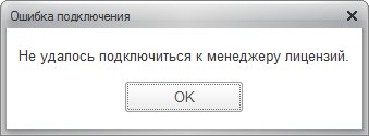 Если на локальном компьютере ранее не был установлен менеджер лицензий Авибус, при первом запуске конфигурации, пользователю будет выведено сообщение об ошибке подключения.