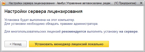 После нажатия кнопки Установить менеджер лицензий локально запустится установка менеджера лицензий.