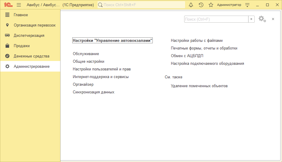 Основные настройки стандартных подсистем «1С:Предприятие» описаны в соответствующих разделах (например, Настройка пользователей), остальные настройки выходят за рамки этой документации и полностью описаны в документации Информационно-технологического сопровождения (ИТС) «1С: Предприятие».