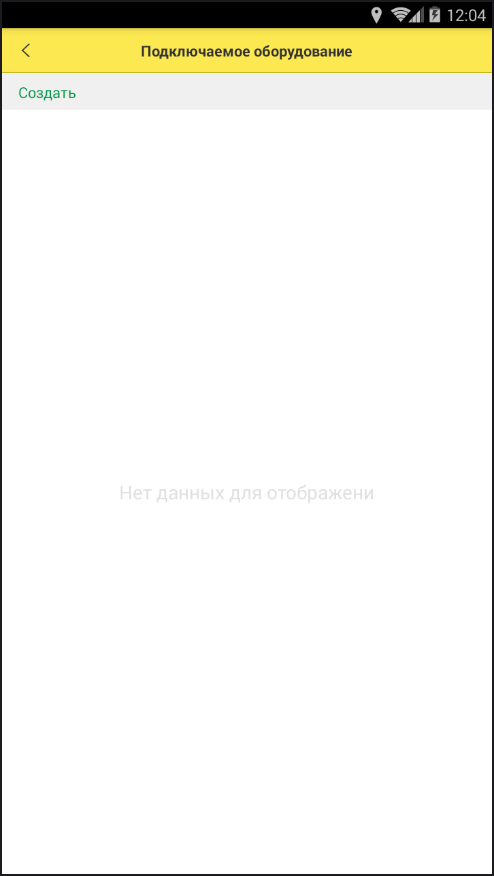 3. Подключите необходимое оборудование: для корректной работы приложения необходимо подключить 2 типа оборудования: ККТ с передачей данных и принтер чеков. Для подключения оборудования в разделе Подключаемое оборудование нажмите кнопку Создать: