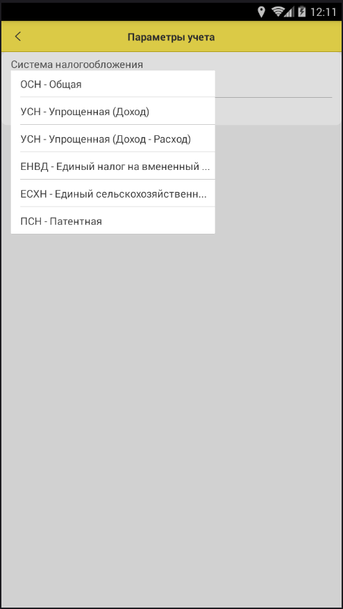 6. В разделе Параметры учета установите используемую систему налогообложения: