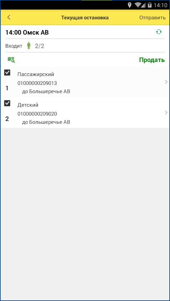 Приложение позволяет водителю автобуса продавать билеты из формы текущей остановки: