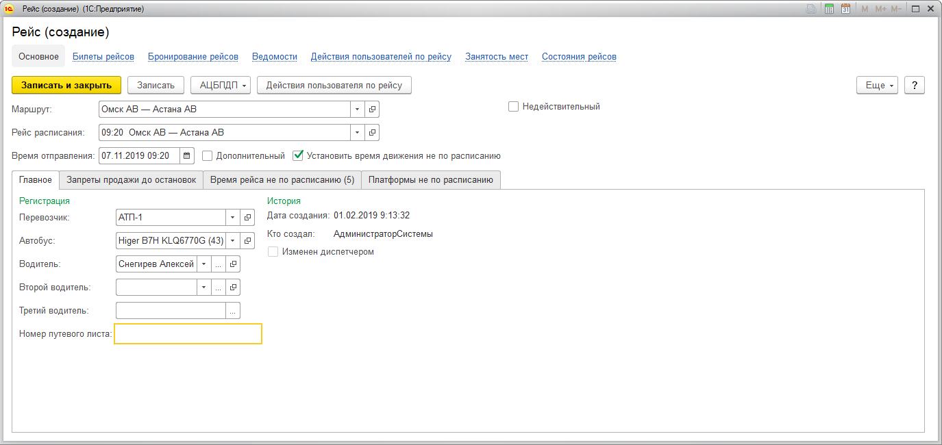 Для создания дополнительного рейса предпочтительно воспользоваться РМД, создание рейсов напрямую в справочнике не рекомендуется.