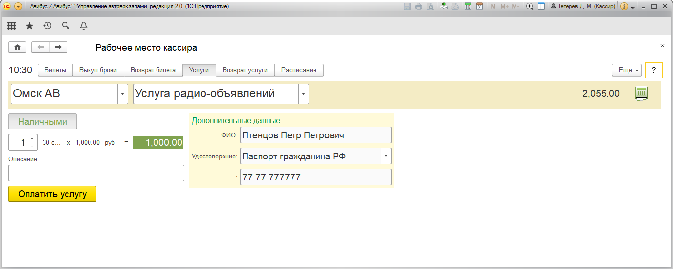 Если для продажи услуги определены обязательные для заполнения персональные данные и дополнительные реквизиты, заполните соответствующие поля Дополнительных данных.