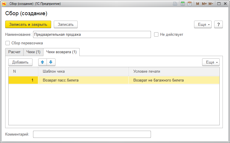 Если установить флаг Не печатать в чеке , то сбор не будет выведен в чеке отдельной строкой, его сумма просто добавится к сумме тарифа, сформировав общую стоимость билета.