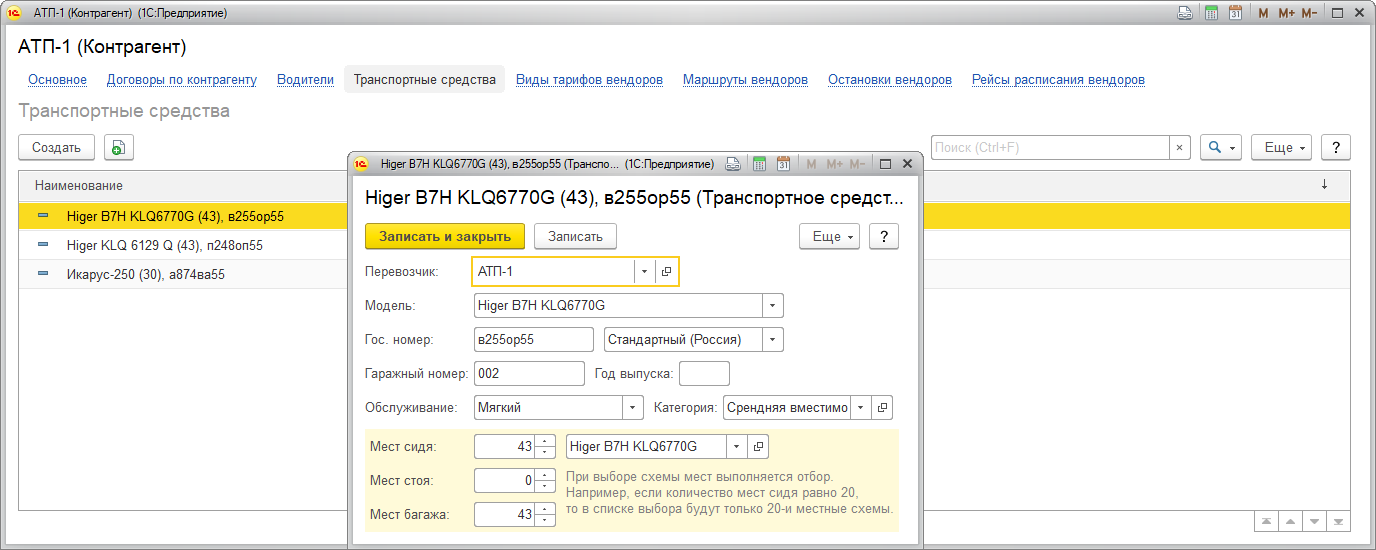 • Категория : категория вместимости транспортного средства (выбор из справочника Категории транспортных средств);