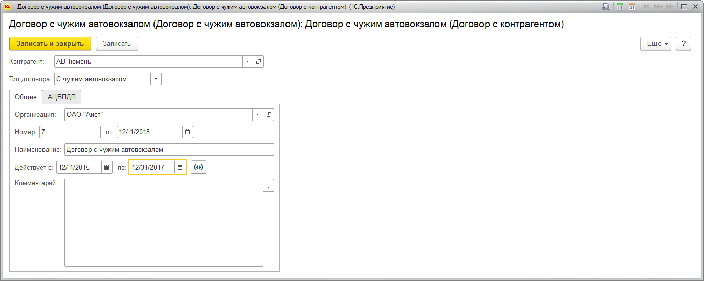 | Сохранить информацию о контрагенте – чужом автовокзале.