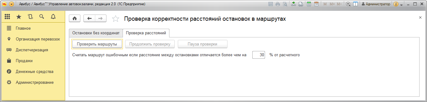 В открывшемся окне Проверка корректности расстояний остановок в маршрутах на вкладке Остановки без координат появится список остановок, для которых не были указаны точные координаты.