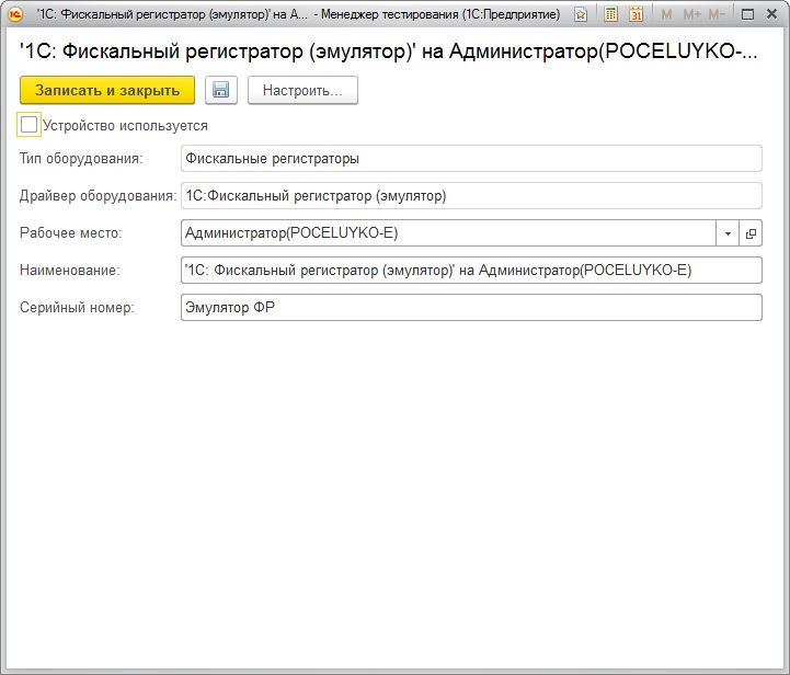 После того как конфигурация записана, можно перейти к настройкам оборудования, нажав кнопку Настроить. Будет предложено установить драйвер оборудования, если он еще не установлен. Этот этап можно пропустить, если настраивается чужое рабочее место.
