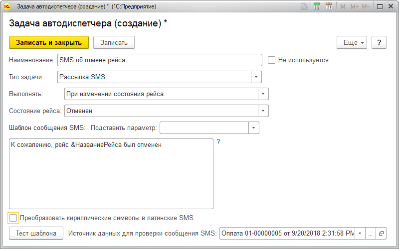 Пример: необходимо рассылать информационные SMS в случае отмены рейса.