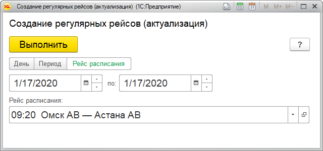 Для создания регулярных рейсов в ручном режиме выполните команду Создать/актуализировать регулярные рейсы раздела Диспетчеризация.