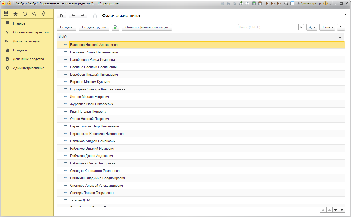 Справочник Физические лица раздела Продажи предназначен для хранения и управления информацией обо всех физических лицах. С его помощью работает автозаполнение в РМК при оформлении посадочных билетов.