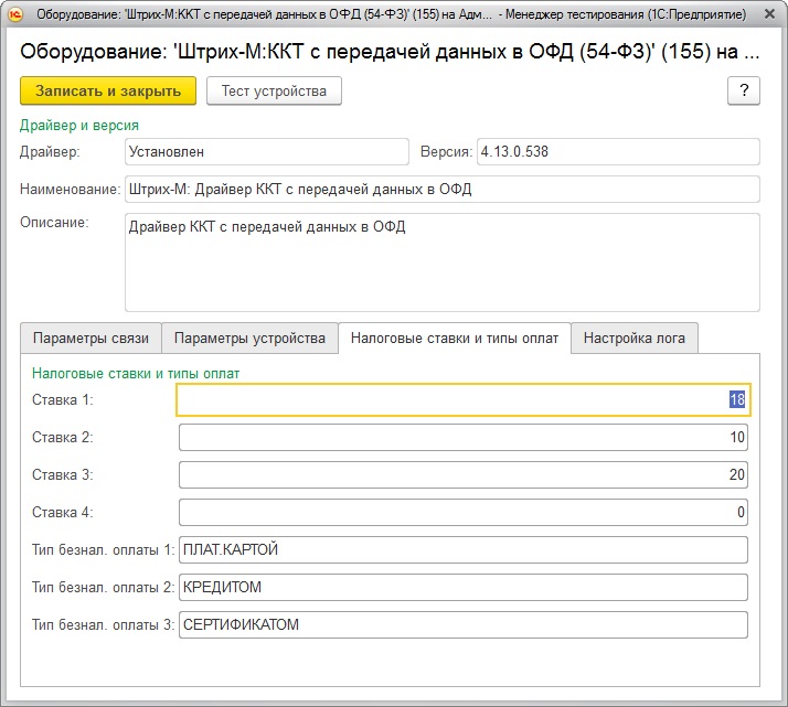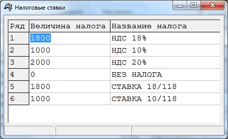 По умолчанию все налоговые ставки «0». Их нужно взять из Теста драйвера, в данном случае Штриха.