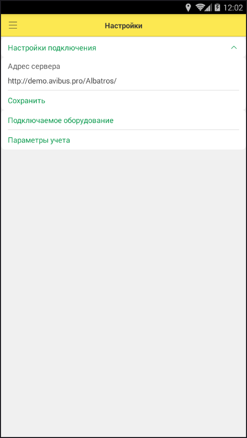 2. В разделе Настройки → Настройки подключения укажите Адрес сервера и нажмите кнопку Сохранить: