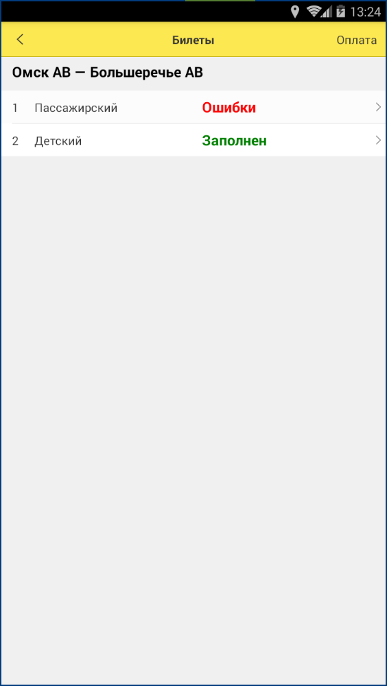 Отметка об ошибках указывает на то, что при оформлении билетов была указана не вся необходимая информация, в данном случае требуется указать персональные данные пассажира при покупке взрослого билета: