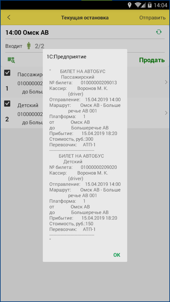 Приложение позволяет водителю автобуса продавать билеты из формы текущей остановки: