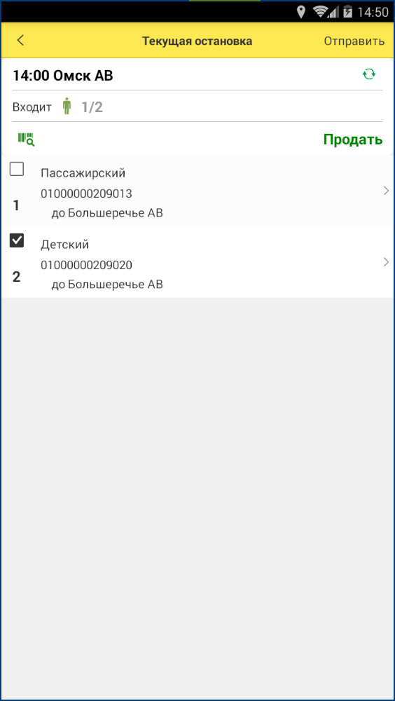 Когда автобус готов к отправке, нажмите кнопку Отправить. В случае если отмечены были не все билеты, выйдет соответствующее уведомление: