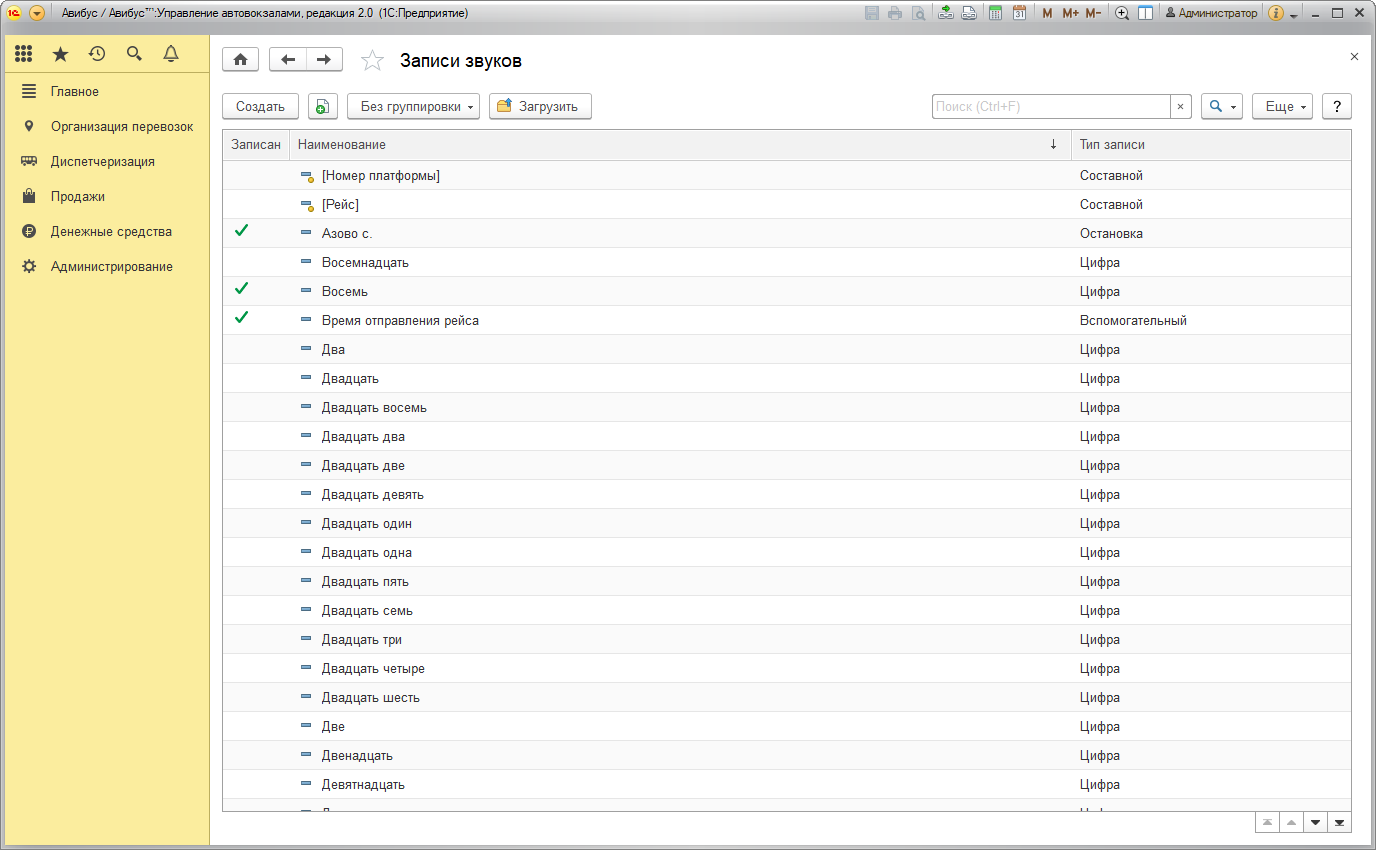 Справочник содержит множество звуковых записей, используемых диспетчерским автоинформатором.