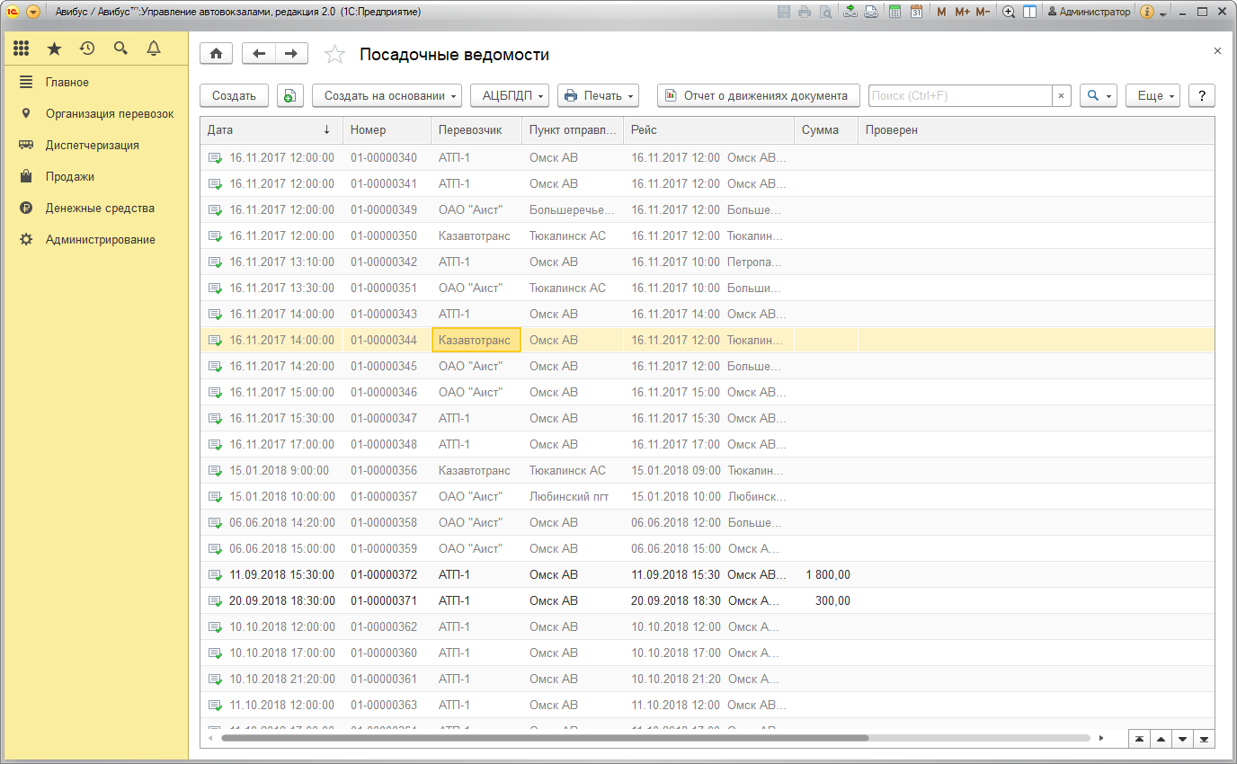 В списке серым цветом выделены посадочные ведомости без пассажиров, а красным – отмененные (либо рейсы, на которых произошла поломка автобуса в пути).