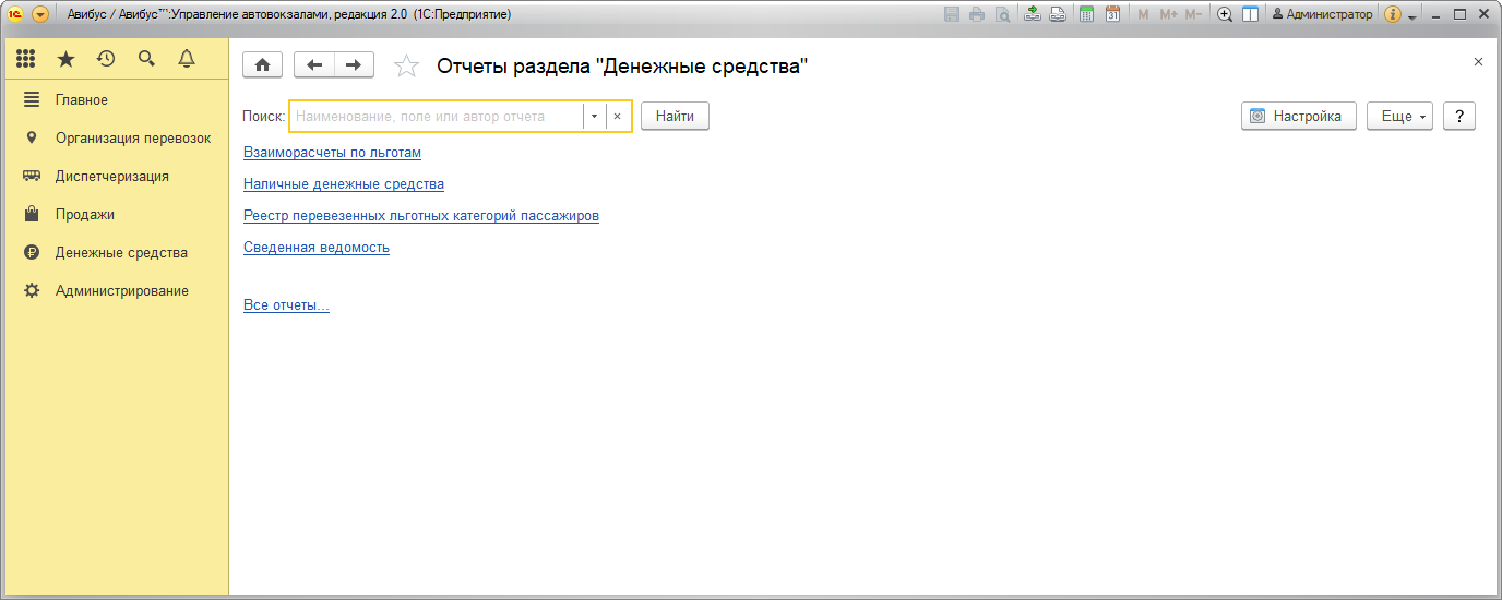 В разделе формируются все отчеты, касающиеся операций с денежными средствами.