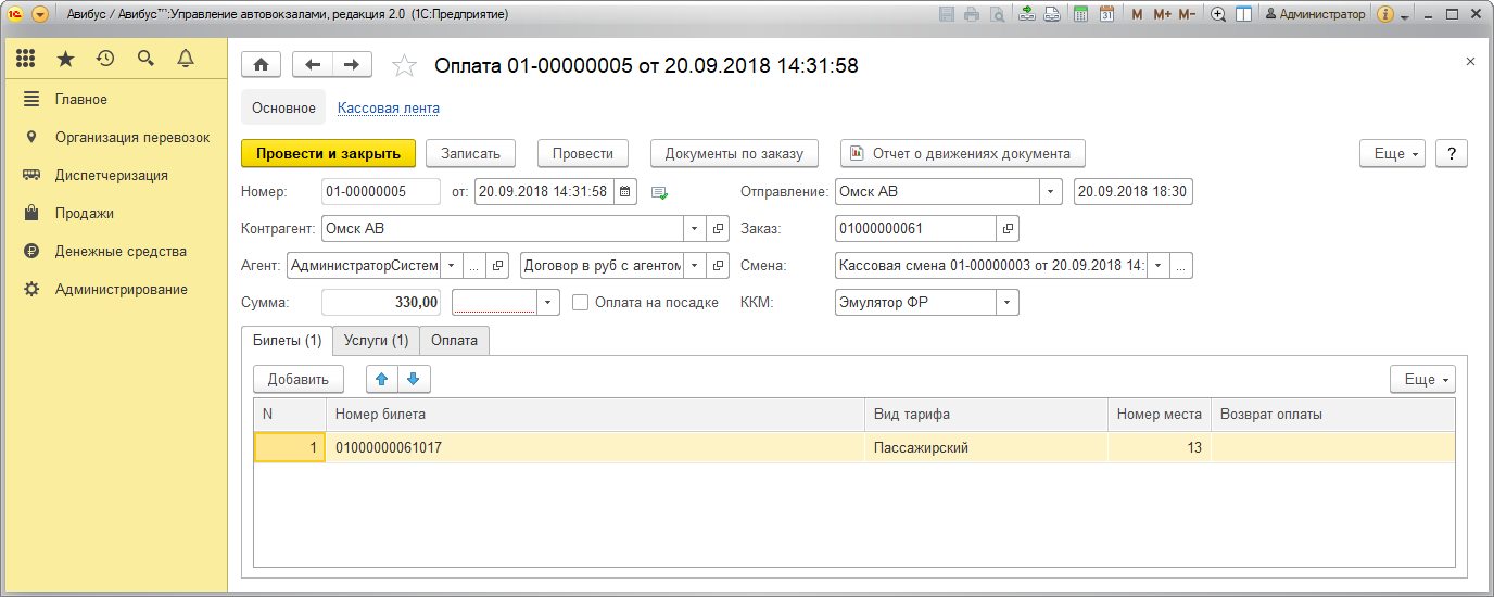 При продаже сторонним агентом билетов чужого автовокзала документ оплаты позволяет корректно формировать задолженность агента перед предприятием и задолженность предприятия перед чужим автовокзалом.