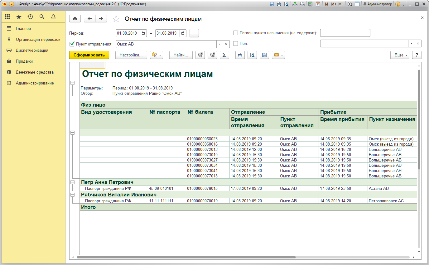 Сформировать отчет по физическим лицам, совершавшим поездки за определенный период времени, подробнее – в разделе Отчеты.