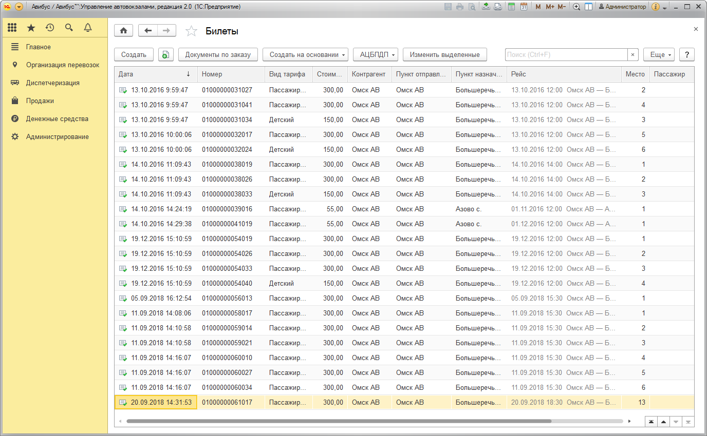 Журнал Список доходов от неиспользованных билетов содержит документы, в котором фиксируются доходы автовокзала от неиспользованных билетов.