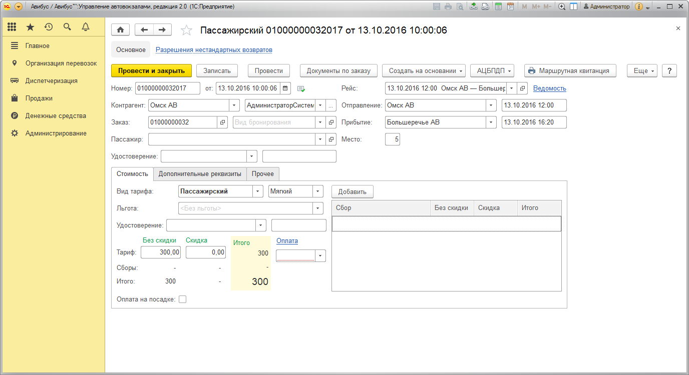 Также доступна сводная информация по Стоимости билета, Дополнительные реквизиты и Прочее.