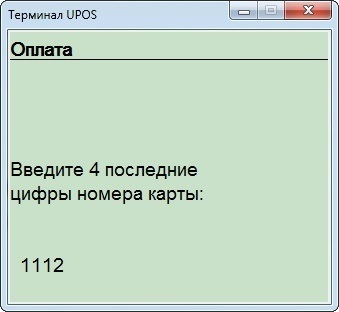 После нажатия на кнопку откроется окно приложения банка-эквайера (для Сбербанка – «Терминал UPOS»).