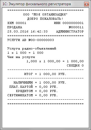 Оплатить заказанную услугу. После нажатия кнопки будет произведена продажа услуги и распечатан чек.