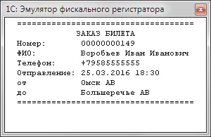 По завершению процесса бронирования будет распечатан чек с данными о произведенной брони, для этого к рабочему месту кассира должен быть подключен фискальный регистратор.