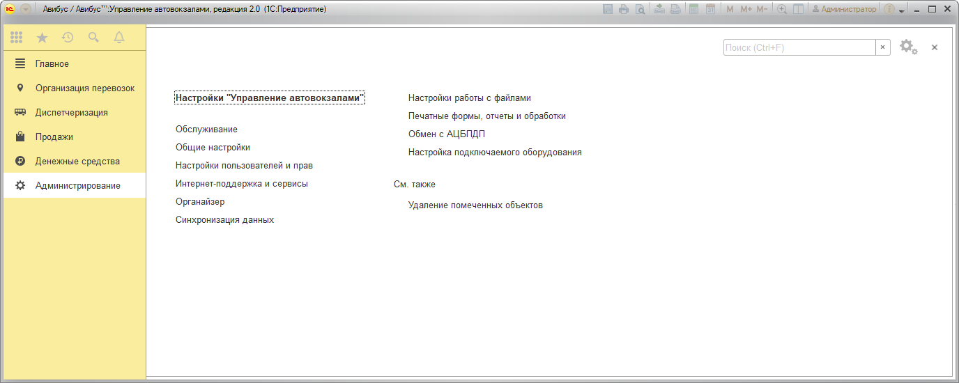 «Авибус: Управление автовокзалами» – это система автоматизации деятельности автовокзалов и автостанций, разработанная на базе платформы «1С:Предприятие 8.3». Программа позволяет комплексно автоматизировать работу кассиров, диспетчеров, отдела расписания, агентов по продаже билетов, бухгалтерии и руководства автовокзала.