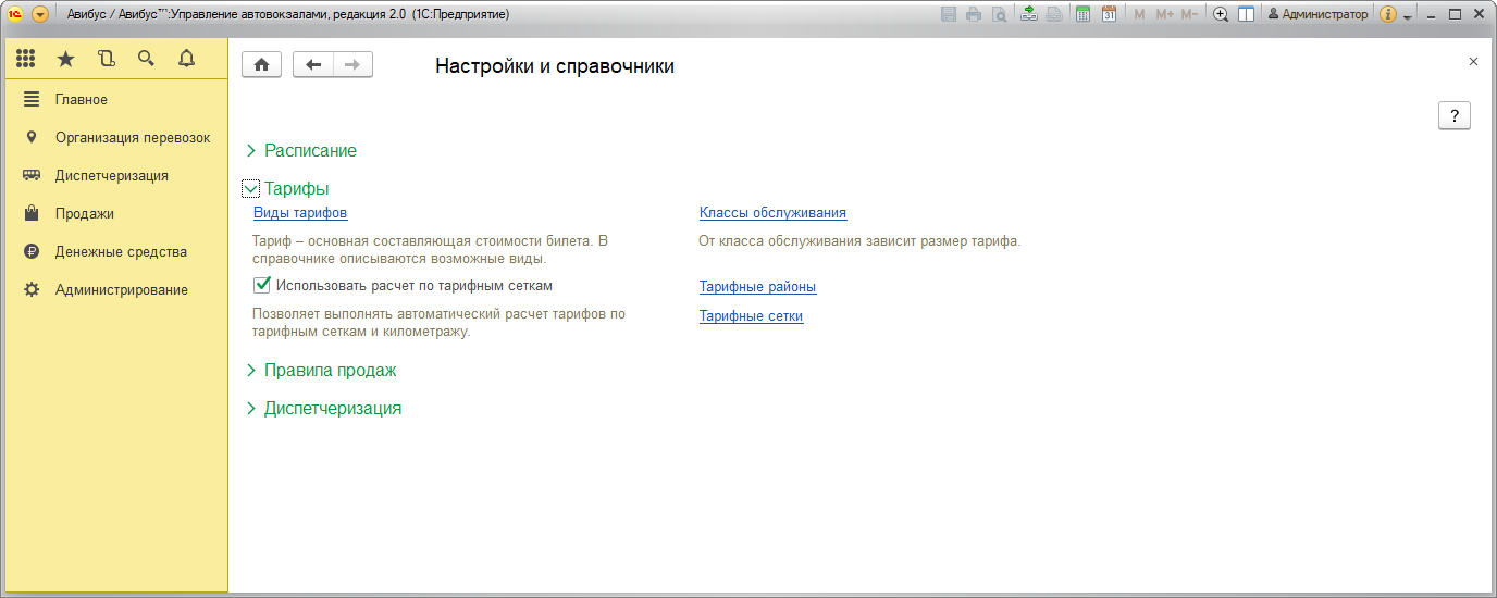 Тарифные сетки : ссылка открывает одноименный справочник тарифных сеток, в котором можно создавать и изменять их, подробнее – в разделе Тарифные сетки.