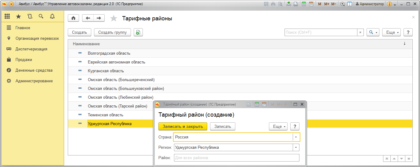 Регионы и Районы указываются в соответствии с КЛАДР. Наименование тарифного района сформируется автоматически по названию региона и района. Создать повторно уже существующий тарифный район невозможно.