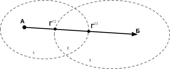 Расстояния: АГ12 = 10 км, Г12Г23 = 15 км, Г23Б = 10 км